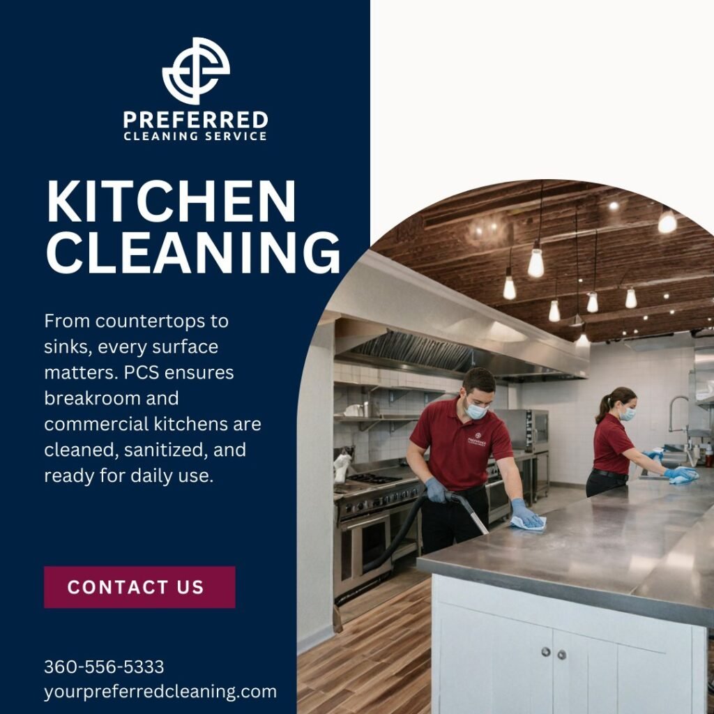 The kitchen is one of the busiest — and most important — areas in any facility. Whether it’s a commercial kitchen, office breakroom, or shared workspace, cleanliness isn’t just about appearance. It’s about safety, hygiene, compliance, and creating an environment people trust. At Preferred Cleaning Service, we understand that kitchen cleaning requires precision, consistency, and…